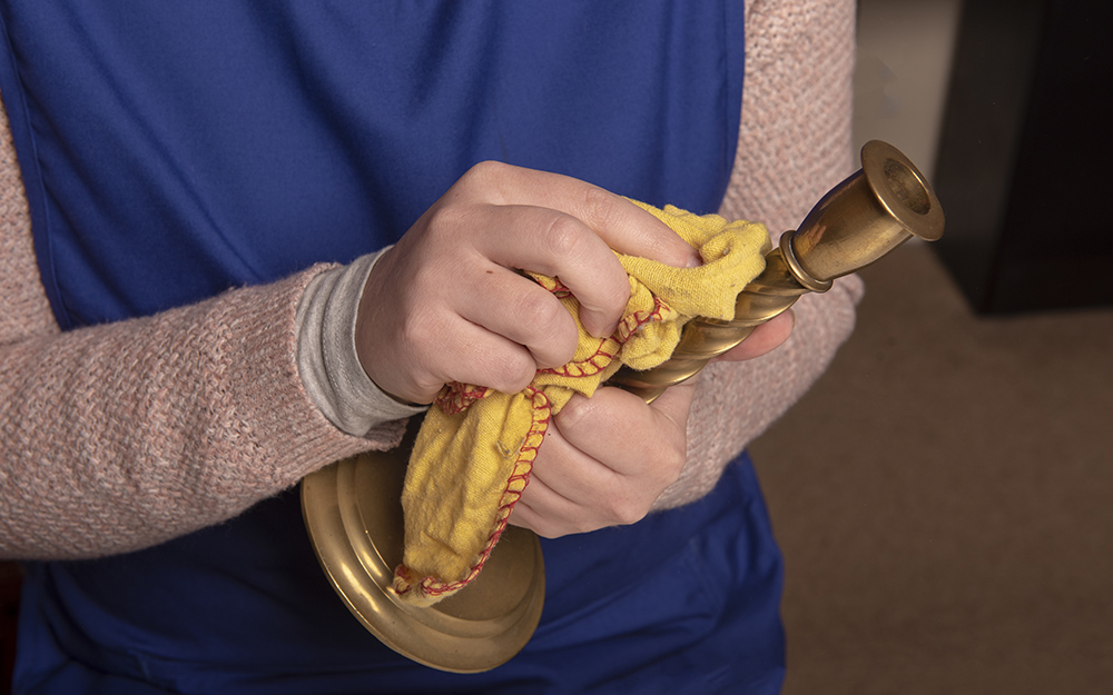 สำหรับทองเหลืองที่ได้รับการเคลือบ จะมีความแวววาวเป็นพิเศษอยู่แล้ว พื้นผิวเรียบลื่น เพียงนำผ้าชุบน้ำบิดหมาดๆ มาเช็ดทำความสะอาดและใช้ผ้าแห้งเช็ดซ้ำอีกรอบก็เพียงพอ แต่อย่าลืมว่าห้ามใช้ผลิตภัณฑ์สำหรับขัดทำความสะอาดเด็ดขาดนะคะ เพราะเดี๋ยวน้ำยาเคลือบจะลอกออกมาหมด